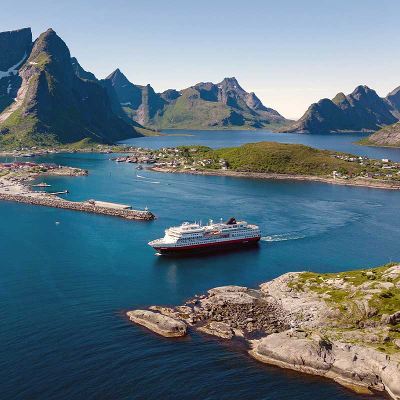 Mellan stoppen tillbringar du tiden ombord på något av Hurtigrutens två fartyg MS Trollfjord och MS Midnatsol. Det är en trollbindande resa, där du får se midnattssolen vila över fjäll och djupblåa fjordar, och landskapet som badar i ett mjukt, arktiskt sken.